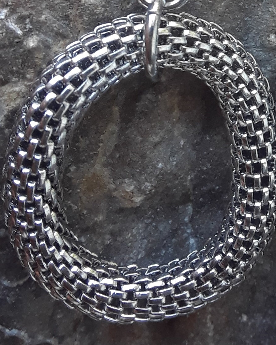 These 2" long pair of stainless steel earrings have a 1" round, hollow, mesh circle design that dangles from steel stud earrings with posts. Lightweight and easy to wear. This stainless steel mesh has a great pattern and an excellent finish.