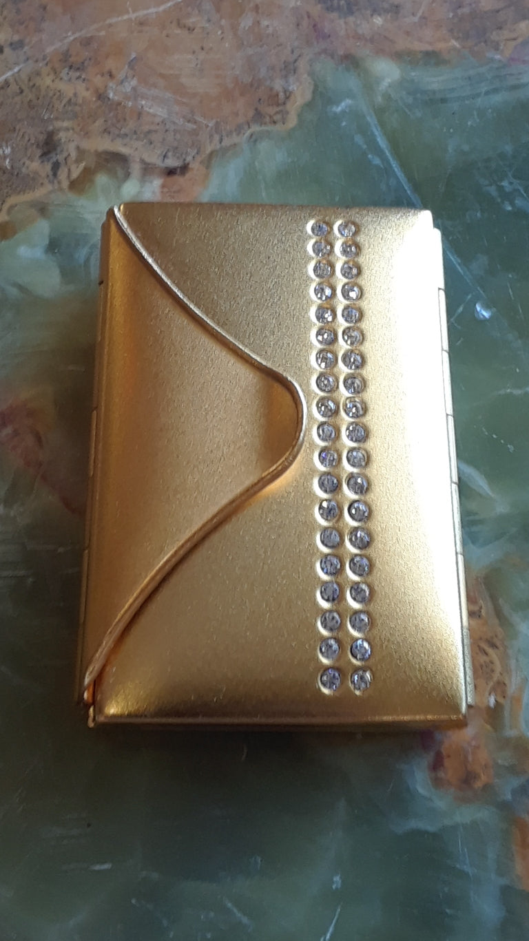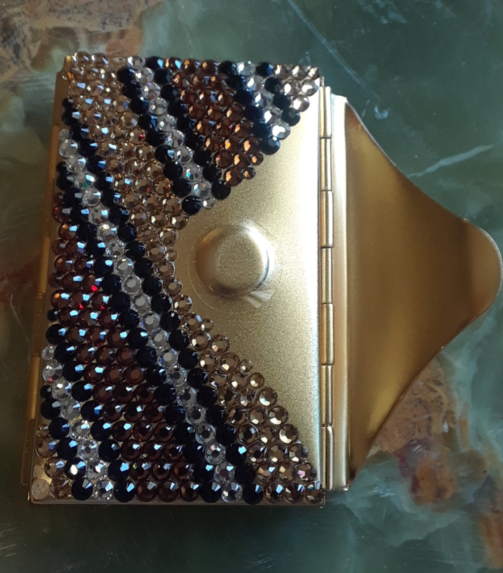 2.5 x 1.5 inches, cute and small envelope style compact mirrors.  A high-end matte finish with accent stones.  Gold and silver-tones available and leopard print design.  These compact mirrors are a fun and stylish gift to have and receive.
